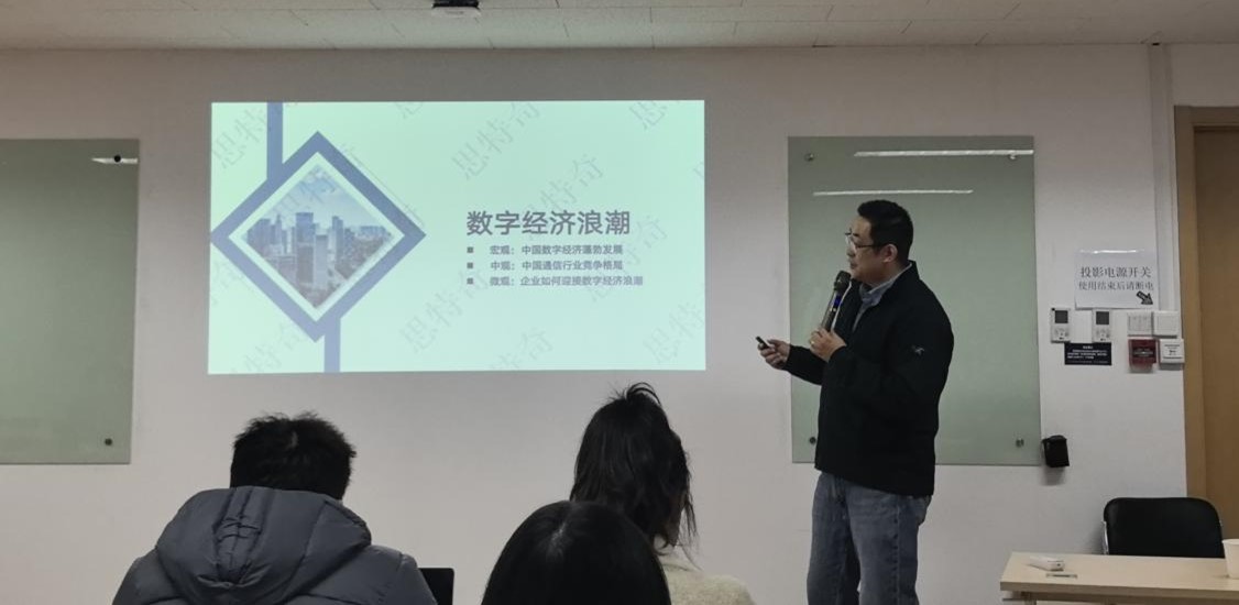 讲座分析了数字经济浪潮的生态形势,孙浩先生从中国数字经济蓬勃发展的宏观层面,到中国通信行业竞争格局的中观层面,再到企业实战策略的微观层面,层层递进解剖企业和员工该如何接受新浪潮的挑战,并以思特奇最真实的发展案列,提供宝贵且有力的经验知识。